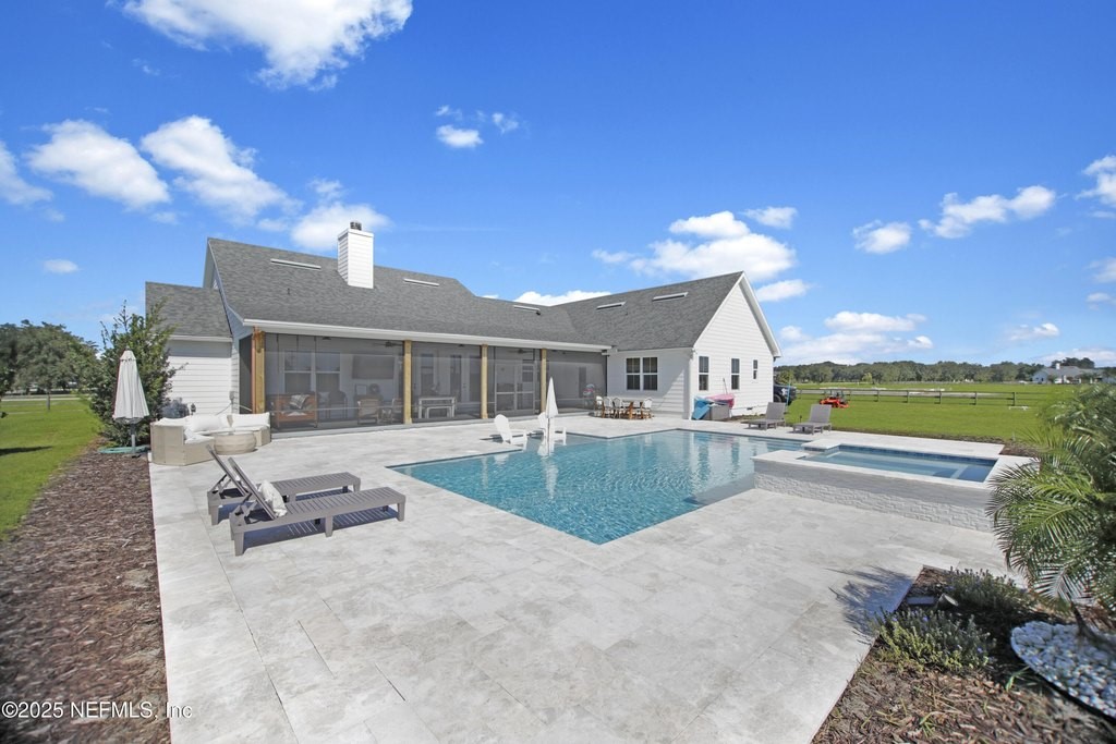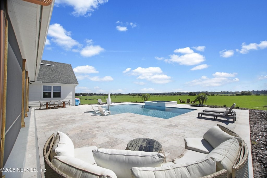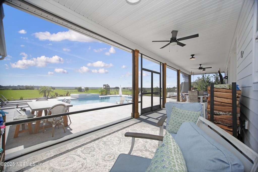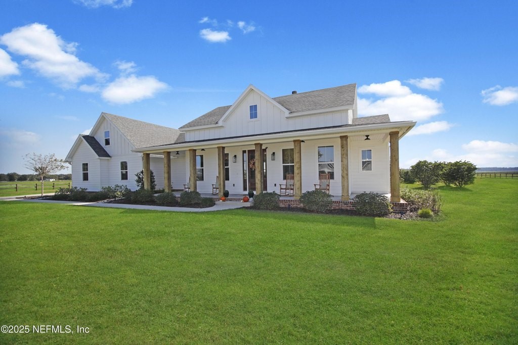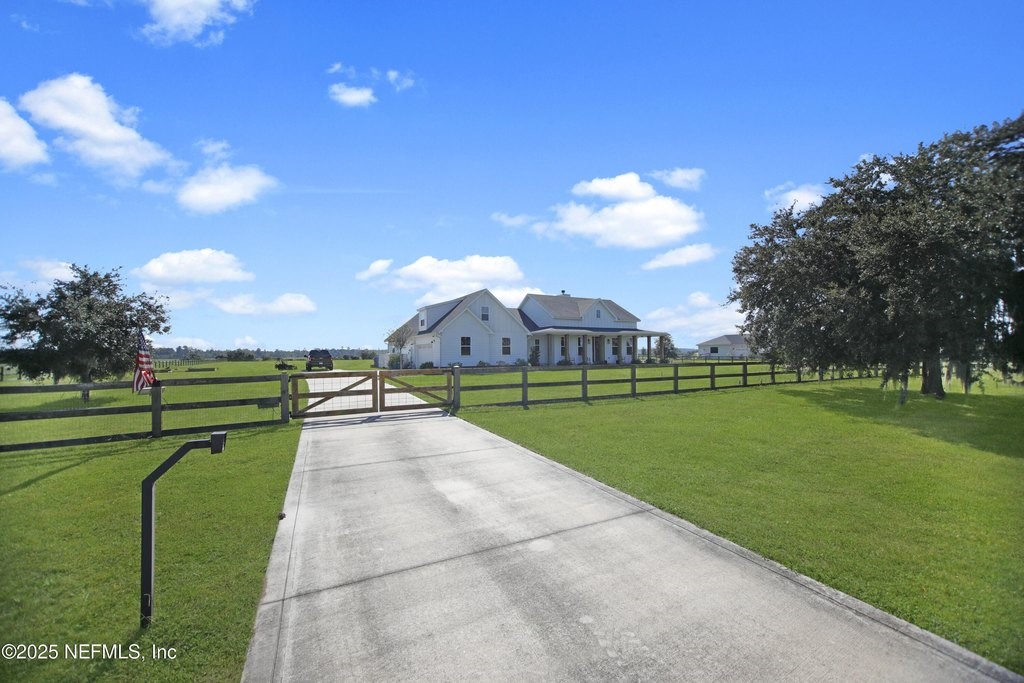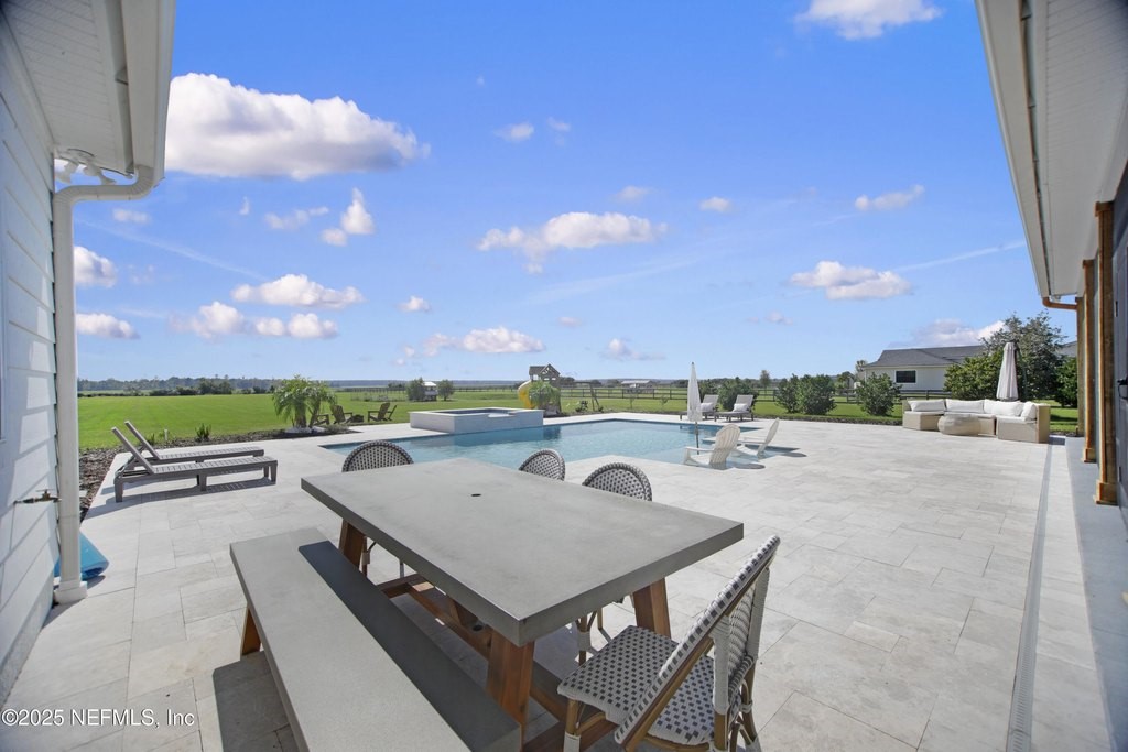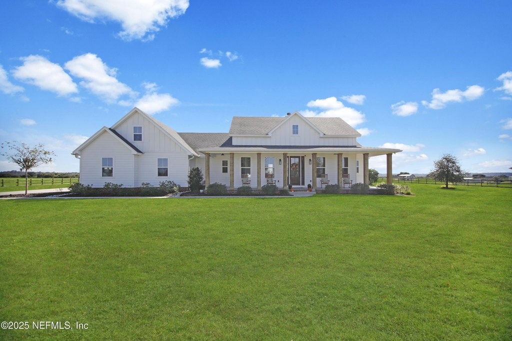 Welcome to your dream equestrian retreat in Elkton, Florida: A stunning 4-bedroom, 3-bath home set on 6.1 picturesque acres overlooking a peaceful 30-acre pond. Offering the perfect blend of country serenity and modern comfort, this property was designed for those who love open space, horses, and the outdoors. The open-concept floor plan spans 2,676 square feet and is ideal for entertaining or relaxed family living. The chef's kitchen is the heart of the home, featuring an oversized island, granite surfaces, a spacious walk-in pantry, and a beautiful brick framing feature that adds warmth and rustic charm to the space. The kitchen flows seamlessly into a bright living area anchored by a cozy wood-burning fireplace. The primary suite includes a freestanding soaking tub, a large walk-in closet, and peaceful views of the surrounding land. Expansive front and back porches capture breathtaking sunrises and sunsets across the pond and pasture. Through the private gated entrance, you'll find fully fenced acreage ready for your horses or other livestock, with plenty of space to add a custom barn or accessory building. Enjoy fishing, kayaking, or trolling a john boat on the pond. A brand-new 18*32 saltwater pool with hot tub, sunshelf, heater, and chiller sits atop elegant sand-blasted marble decking that's non-slip and cool underfoot, creating a true backyard oasis. The oversized two-car garage and whole-home water softener add comfort and convenience. Located just minutes from I-95 and St. Augustine's shops and restaurants, yet tucked away in the quiet countryside of Elkton, this home offers the best of both worlds. Families will also appreciate proximity to excellent A-rated St. John's county schools and nearby private school options such as St. Joseph Academy, Cathedral Parish School, and Turning Point Christian Academy. Whether you're an equestrian enthusiast, a hobby farmer, or simply seeking peaceful waterfront living, this exceptional Elkton property delivers the lifestyle, space, and freedom you've been dreaming of.