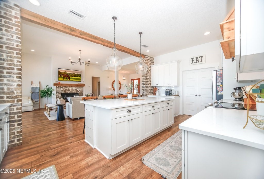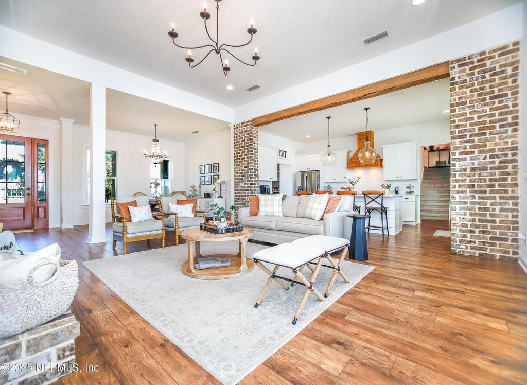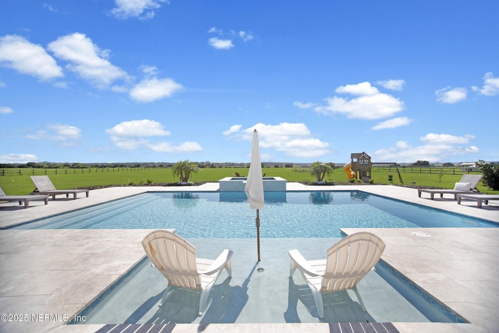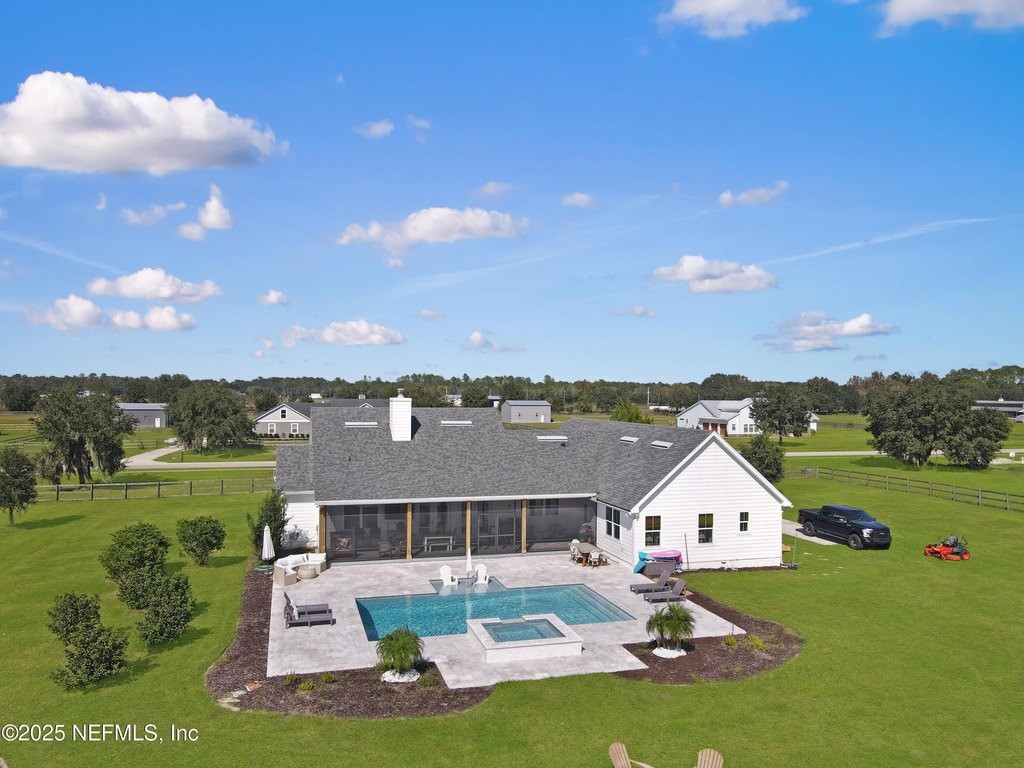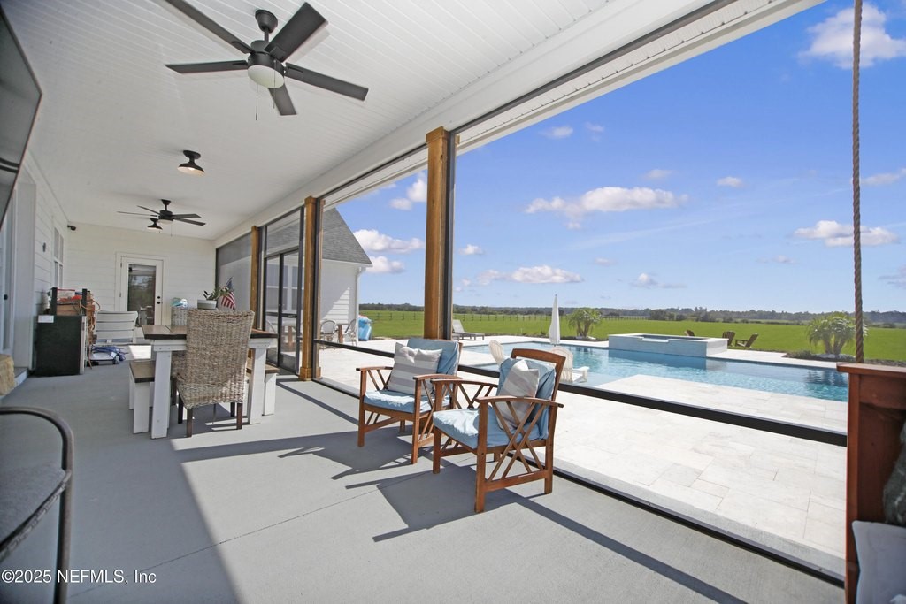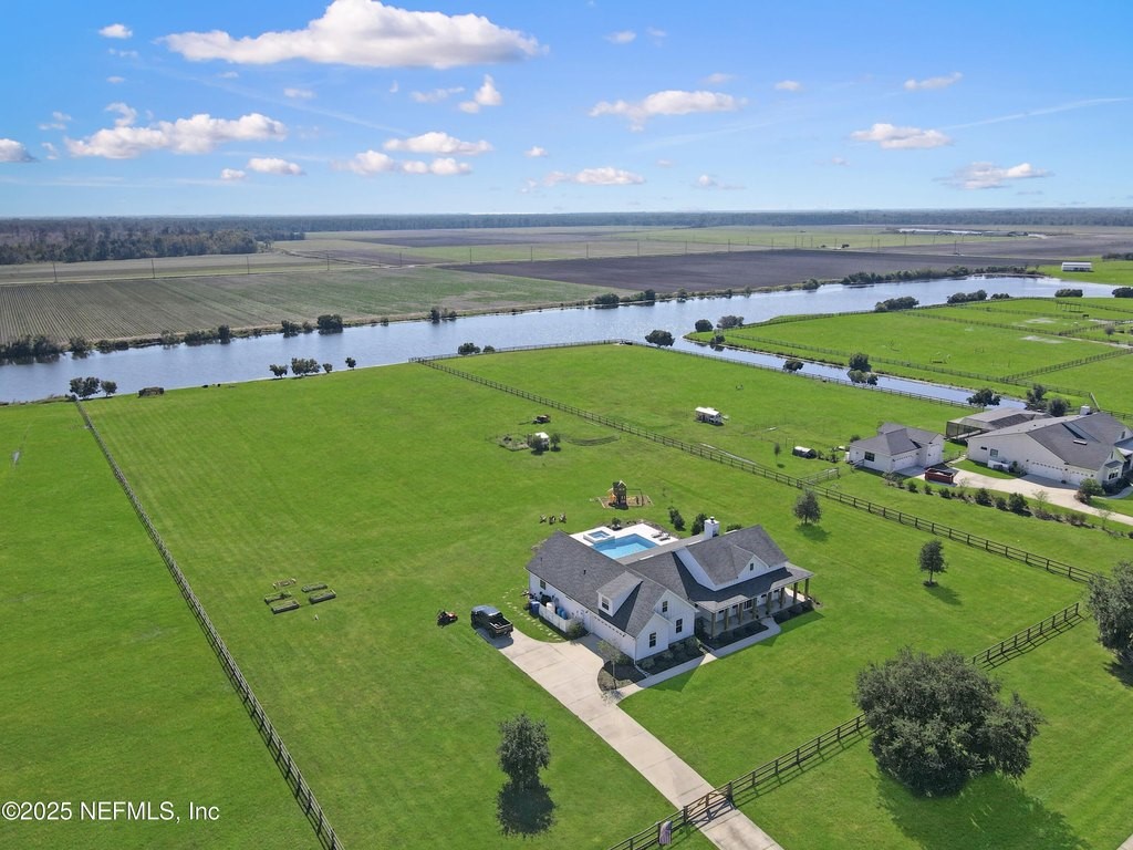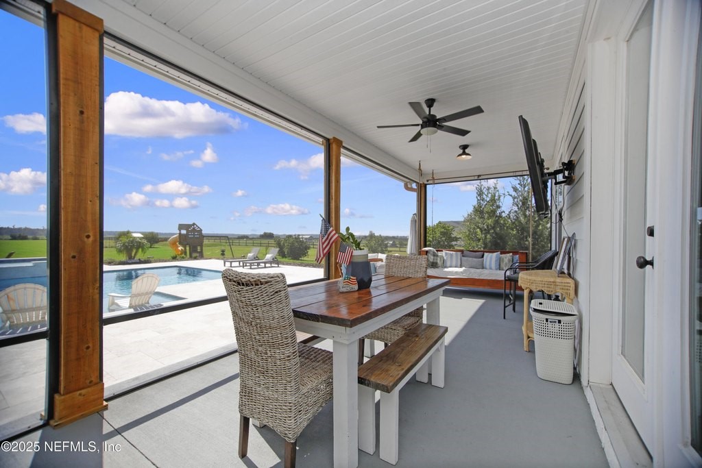 Welcome to your dream equestrian retreat in Elkton, Florida: A stunning 4-bedroom, 3-bath home set on 6.1 picturesque acres overlooking a peaceful 30-acre pond. Offering the perfect blend of country serenity and modern comfort, this property was designed for those who love open space, horses, and the outdoors. The open-concept floor plan spans 2,676 square feet and is ideal for entertaining or relaxed family living. The chef's kitchen is the heart of the home, featuring an oversized island, granite surfaces, a spacious walk-in pantry, and a beautiful brick framing feature that adds warmth and rustic charm to the space. The kitchen flows seamlessly into a bright living area anchored by a cozy wood-burning fireplace. The primary suite includes a freestanding soaking tub, a large walk-in closet, and peaceful views of the surrounding land. Expansive front and back porches capture breathtaking sunrises and sunsets across the pond and pasture. Through the private gated entrance, you'll find fully fenced acreage ready for your horses or other livestock, with plenty of space to add a custom barn or accessory building. Enjoy fishing, kayaking, or trolling a john boat on the pond. A brand-new 18*32 saltwater pool with hot tub, sunshelf, heater, and chiller sits atop elegant sand-blasted marble decking that's non-slip and cool underfoot, creating a true backyard oasis. The oversized two-car garage and whole-home water softener add comfort and convenience. Located just minutes from I-95 and St. Augustine's shops and restaurants, yet tucked away in the quiet countryside of Elkton, this home offers the best of both worlds. Families will also appreciate proximity to excellent A-rated St. John's county schools and nearby private school options such as St. Joseph Academy, Cathedral Parish School, and Turning Point Christian Academy. Whether you're an equestrian enthusiast, a hobby farmer, or simply seeking peaceful waterfront living, this exceptional Elkton property delivers the lifestyle, space, and freedom you've been dreaming of.